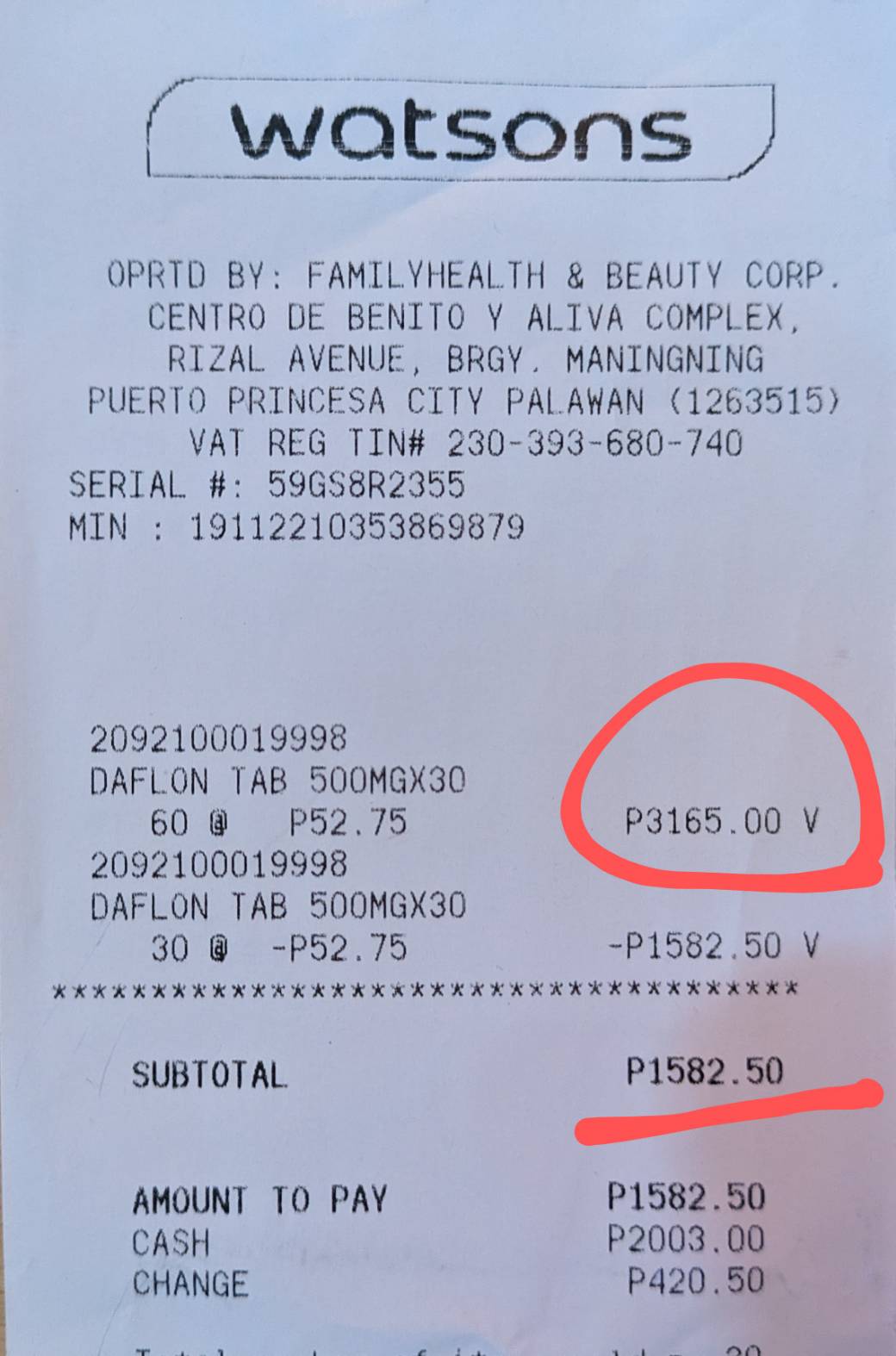 量を減らして10日分にすることに。すると、価格は1582ペソ(約4000円)。まあ、まだ高いけど、笑い話にできるレベルですよね。