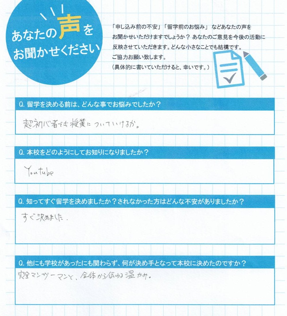 Q.他にも学校があったにも関わらず、何が決め手でパラワン留学に決めたのですか?