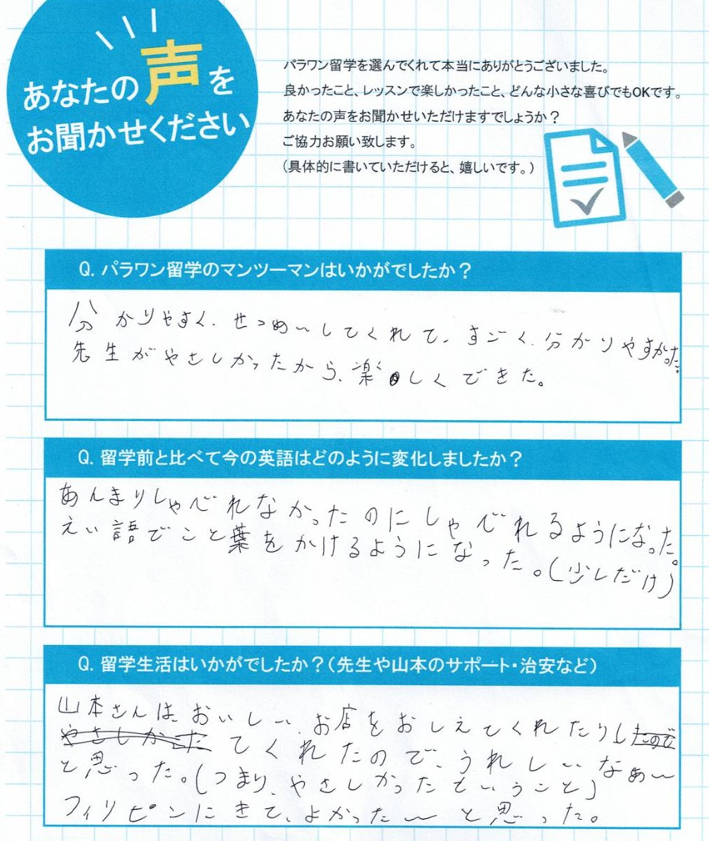 パラワン留学のマンツーマンレッスンはいかがでしたか?